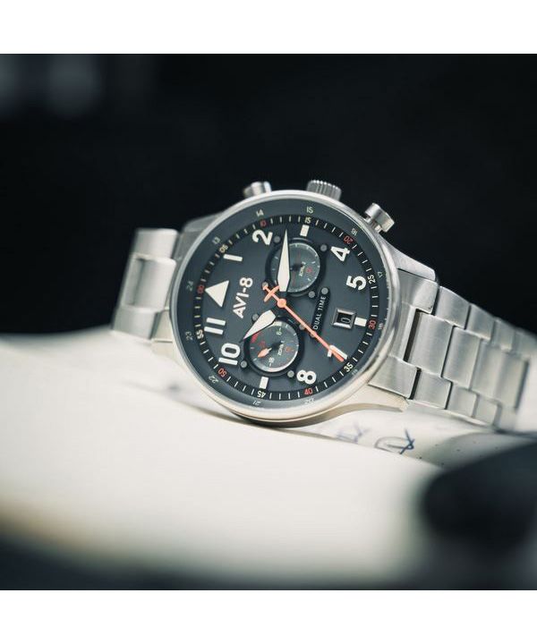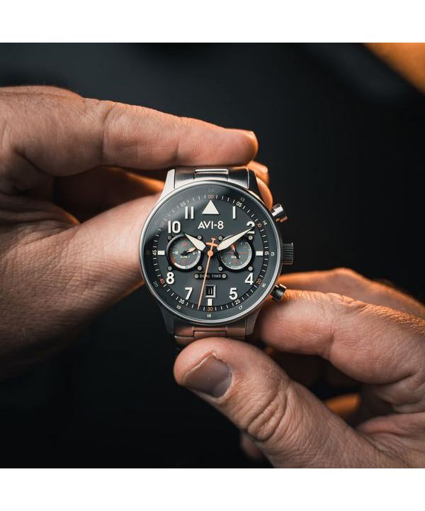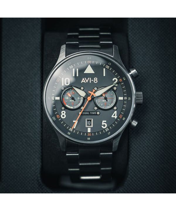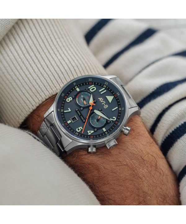 AVI-8 Hawker Hurricane Carey Dual Time Gutersloh Stainless Steel Blue Dial AV-4088-22 Men’s Watch