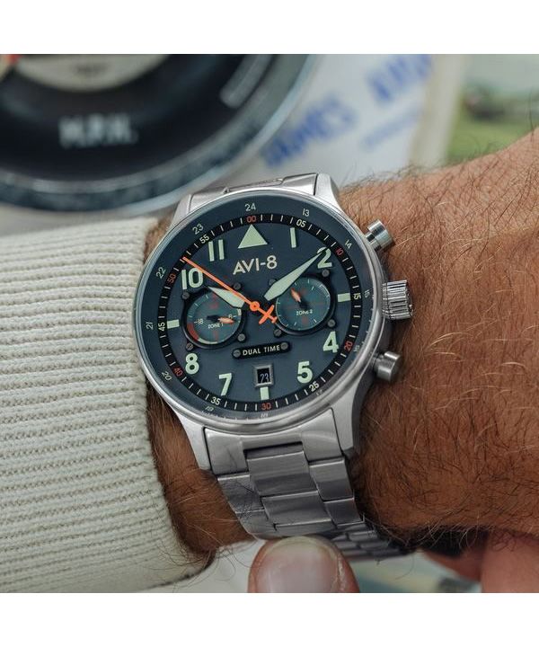AVI-8 Hawker Hurricane Carey Dual Time Gutersloh Stainless Steel Blue Dial AV-4088-22 Men's Watch
