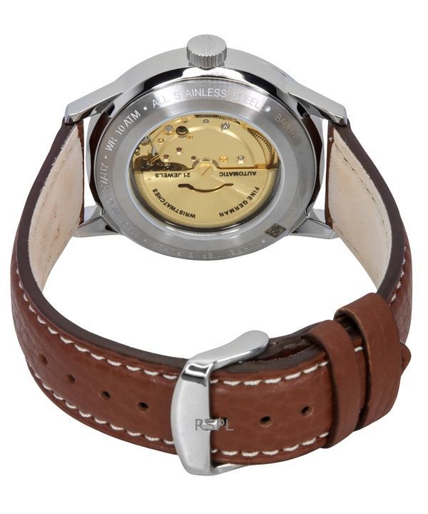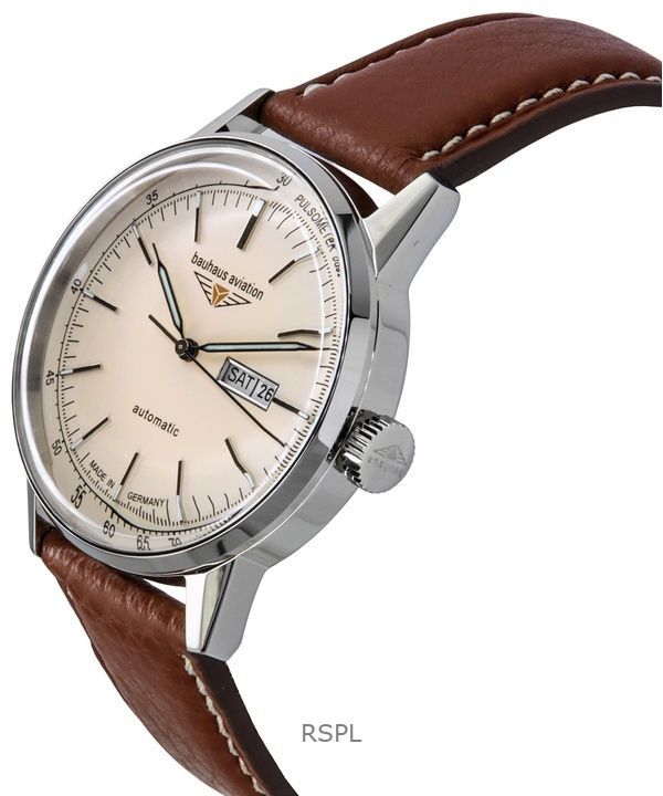 Bauhaus Aviation Leather Strap Beige Dial Automatic 23665 100M Men’s Watch