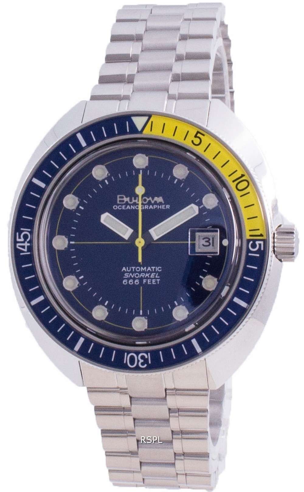 Bulova Oceanographer Expansion Automatic Diver’s 96B320 200M Men’s Watch A reissue of the Bulova Devil Diver from the ‘70s, it is one of the more affordable options with full functionalities intact. Idea for those looking for a new watch with a retro design with slightly different hour-markers – in this case, transparent cylinders filled with lume. All in all, Bulova made one hell of a diver-styled watch that preserves the look of the original Oceanographer.