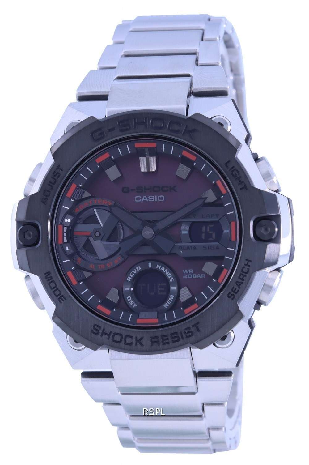 | Features | Analog Digital Display, G-Shock Connected App, Shock Resistant, Carbon Core Guard Structure, Black Ion Plated Bezel, Tough Solar, Double LED light, Mobile Link , World Time, 1/100 Second Stopwatch, Countdown Timer, Alarms, Hourly Time Signal, Full Auto Calendar, 12/24 Hours Display, Button Operation Tone On/Off, 200m Water Resistance |