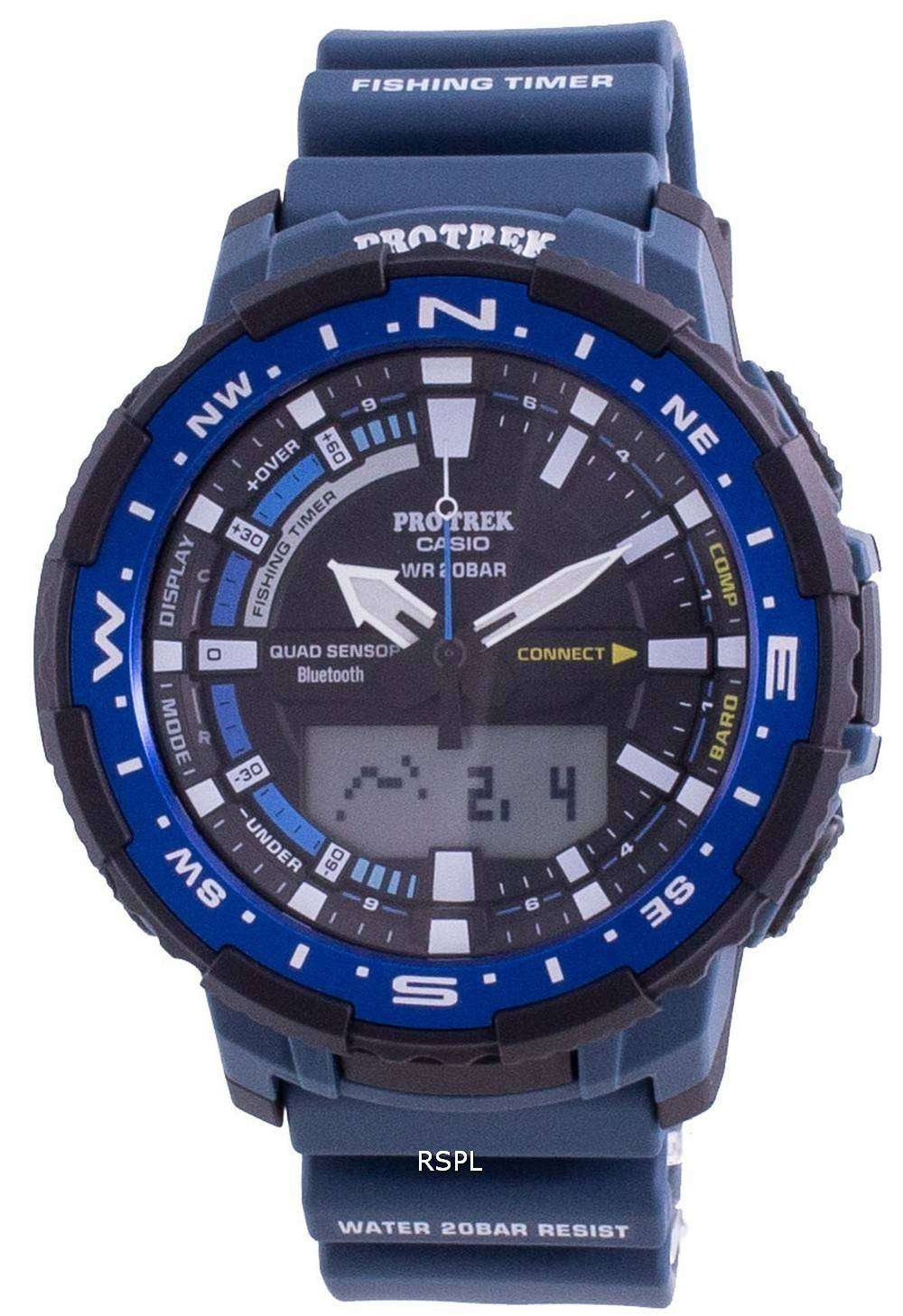 Casio Protrek Bluetooth Smart Quad Sensor Quartz PRT-B70-2 PRTB70-2 200M Men’s Watch This watch comprises a compass, a barometer, an altimeter and a thermometer besides an accelerometer that counts your steps. It connects to your smart phone, updates time and locates your position on this world. It also accompanies you when you are out in the sea or underwater. It displays fishing information too and can be called the complete, outdoor watch.