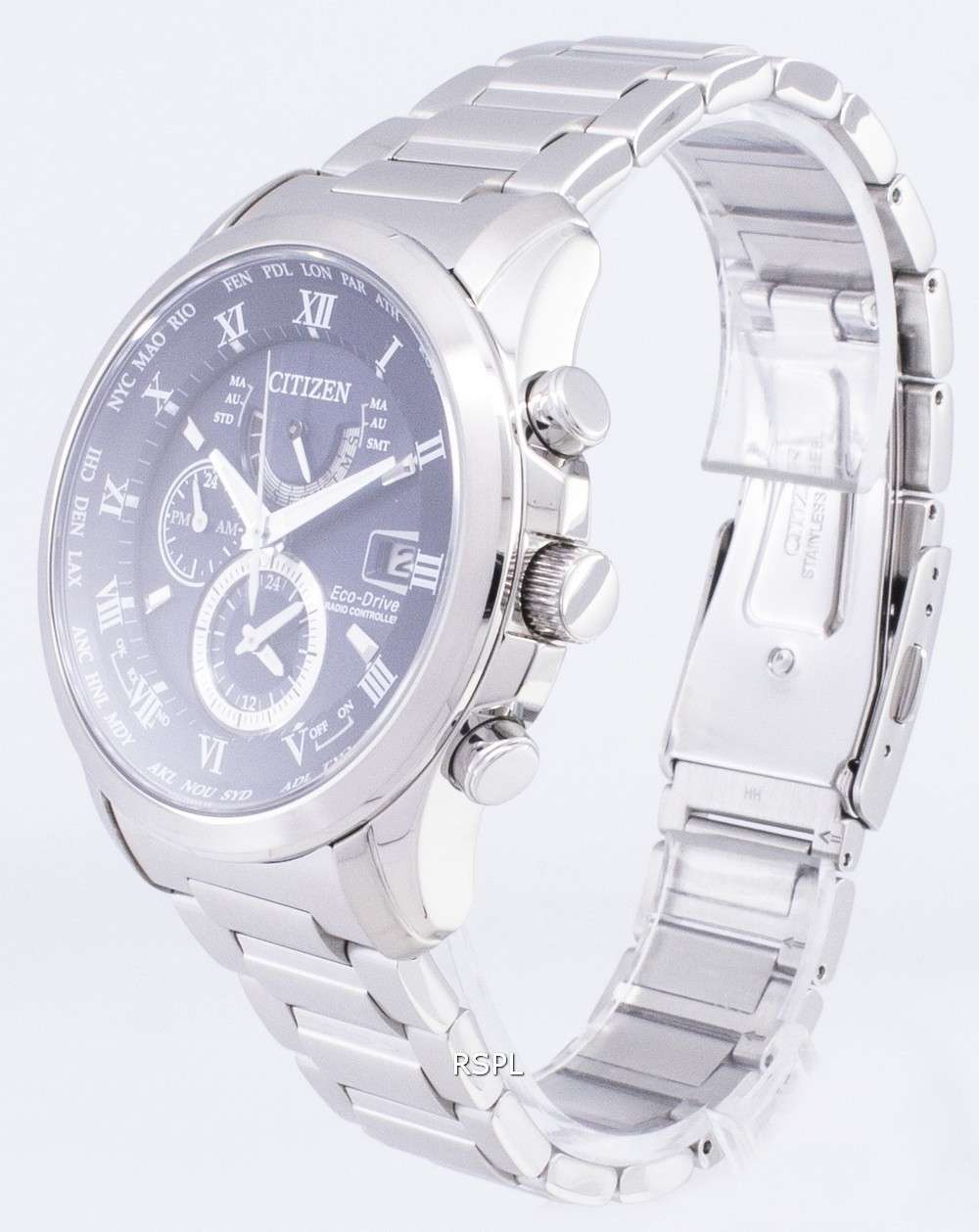Features Analog Display, Perpetual Calendar, Radio Controlled, Dual Time, Chronograph Function, 100M Water Resistance