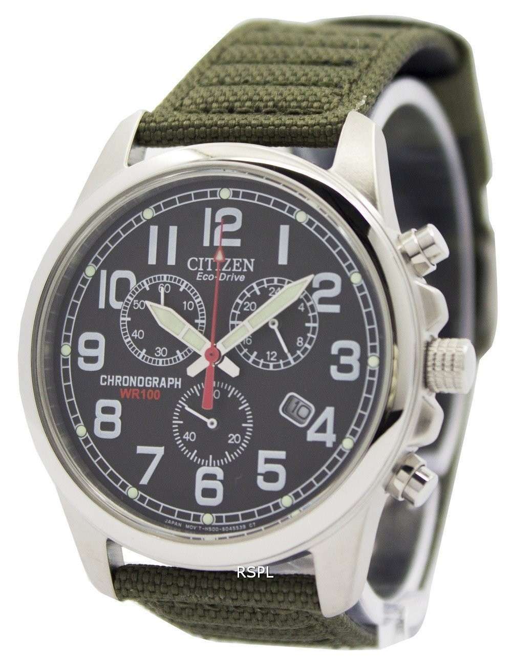 Citizen Eco-Drive Chronograph Green Canvas Strap 100M AT0200-05E Men’s Watch
