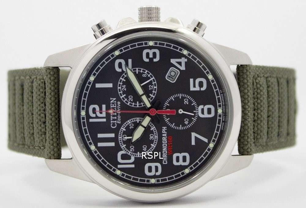 A rugged look joins a comfortable fit in this military-inspired Citizen Eco-Drive Chronograph. The rugged, green, canvas band is built tough for the outdoors, so whether you go rock climbing, swimming or snorkelling, you do not need to worry a bit on keeping your watch safe from the harsh environmental conditions. Great technology that frees you from the dead-battery-syndrome ordinary quartz watches are infamous for.