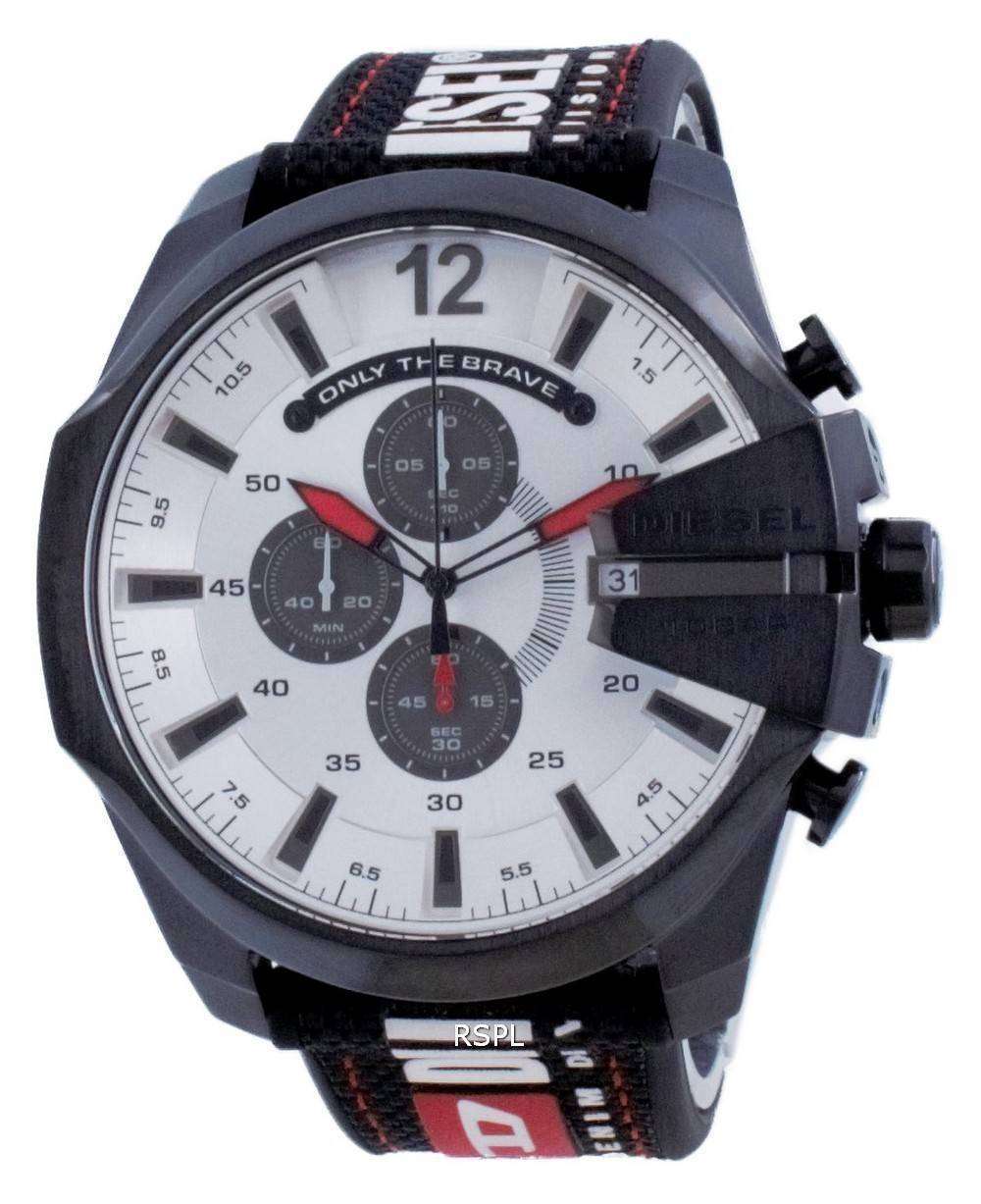 Diesel Mega Chief Chronograph Nylon Quartz DZ4512 100M Men’s Watch Diesel has always attracted rebels. There’s a little bit of a rebel in us all. Get started creating your own rebel world with the Mega Chief; borderless, singular, visual and natural. A great balance between quality and affordability, it’s not the watch you come across every day. A fantastic one for tough, young wrists on the streets, especially, on weekends.