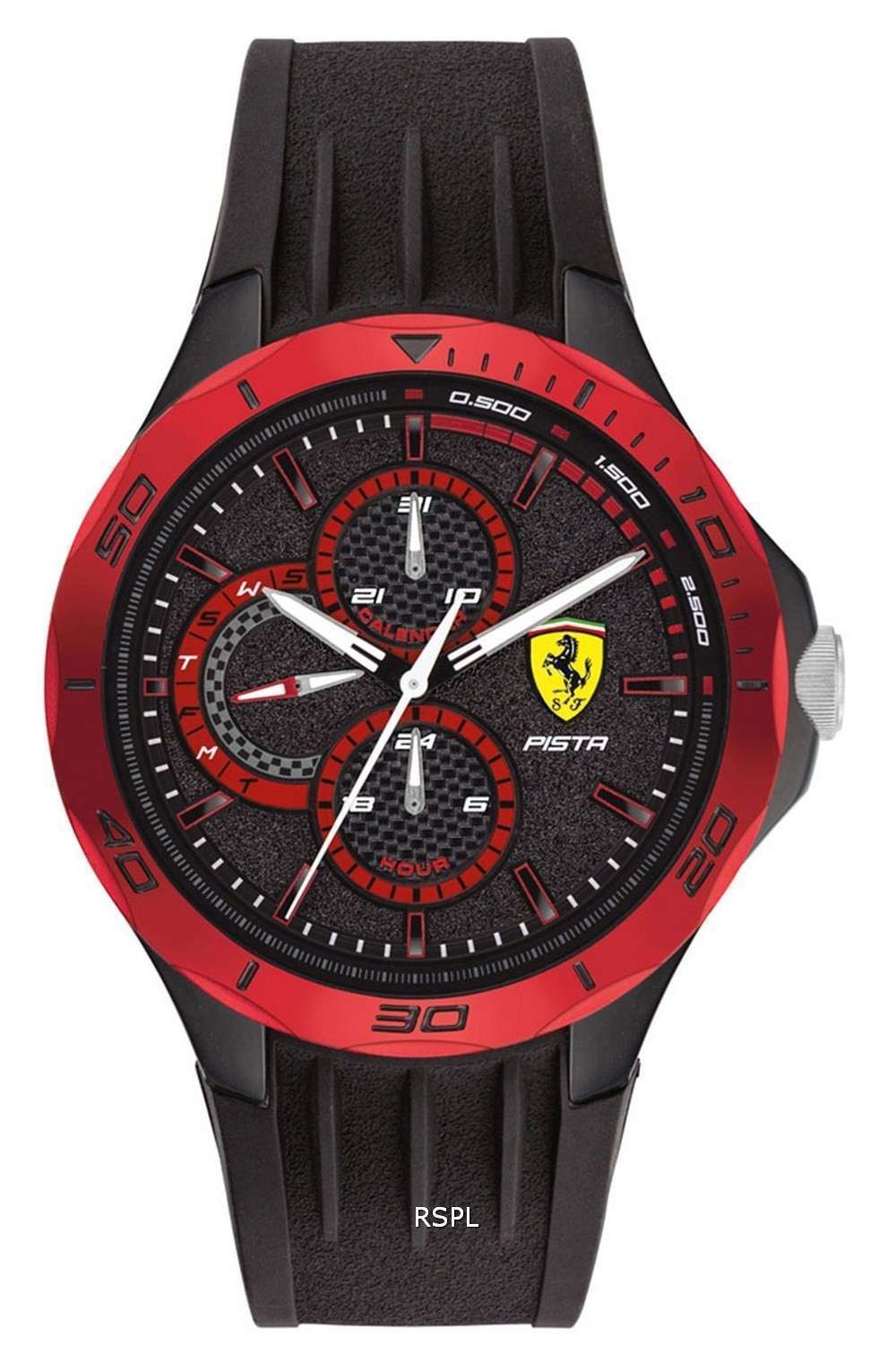 Ferrari Scuderia Pista Black Dial Silicon Band Quartz 0830721 Mens Watch