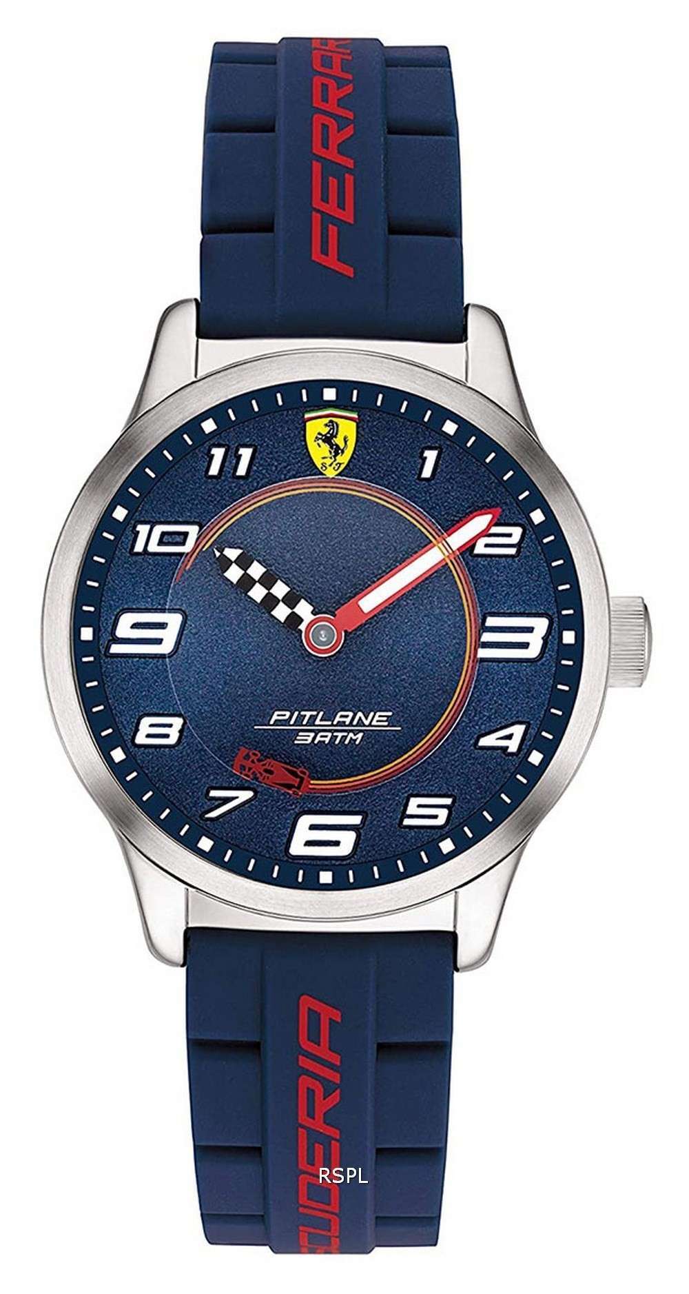 Ferrari Scuderia Pitlane Blue Dial Silicon Band Quartz 0860015 Unisex Watch The silver minutes and hours hands are designed to appear with an added dimension, bringing a distinctive difference in modern watch designs. The inner, three-quarter ring is a design detail you’ll find in the gauges of a driver’s dashboard. The Scuderia Ferrari Racing Team inspires this watch heart and soul, embodying the spirit of the F1 legend through its sculpted form and signature design details.