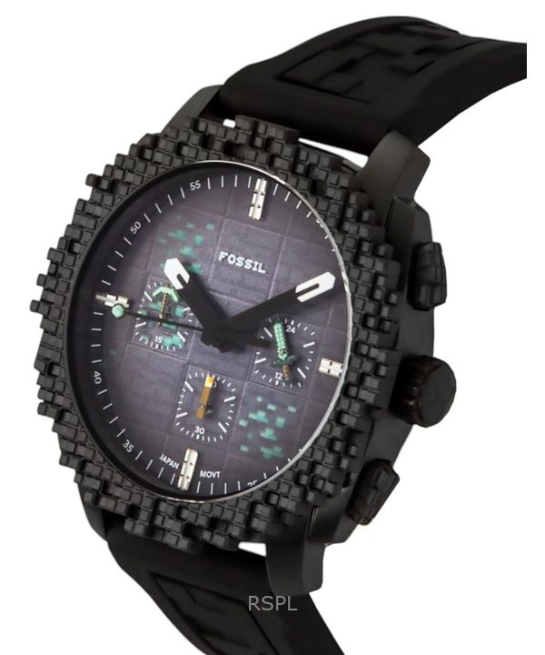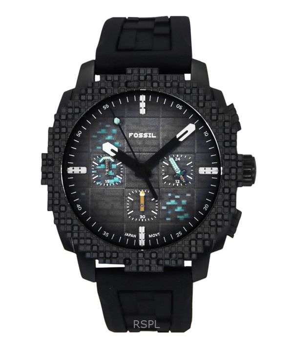 Fossil Minecraft Deepslate Chronograph Limited Edition Silicone Strap Black Dial Quartz LE1205 Men's Watch