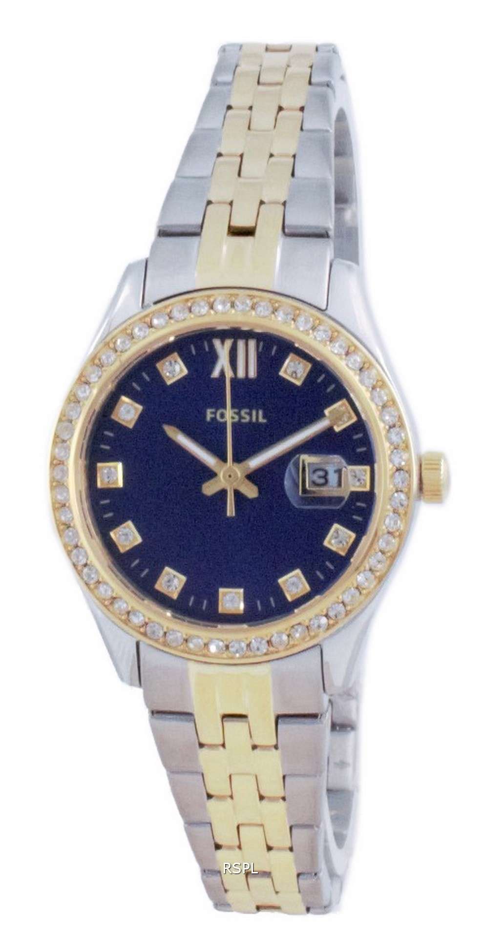 Fossil Scarlette Micro Two Tone Stainless Steel Quartz ES5034 Women’s Watch Meant to be paired with dark, elegant clothes and gold-colored jewellery, Fossil Scarlette Micro Diamond Accents is gorgeous and graceful at the same time, ideal as an evening wear for formal dinner and cocktails or some similar social gatherings where heavy jewellery is against the dress code. It is even wearable at corporate invitations where adding a little glam to your attire isn’t an issue.