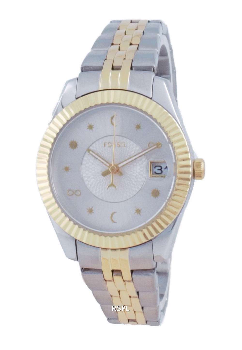 Bring a new meaning to quality timekeeping wear! The Fossil Scarlette Mini has been designed to become iconic over time, blending refined timelessness with on-the-go functionality. Capturing the perfect balance with its signature touch, it’s a design in modern materials; glamorous and very much an essential piece of everyday fashion accessory. It exhibits a slightly retro, 1970s’ vibe with its two-tone.