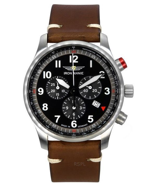 Iron Annie F13 Tempelhof Chronograph Brown Leather Strap Black Dial Quartz 56882 Men’s Watch