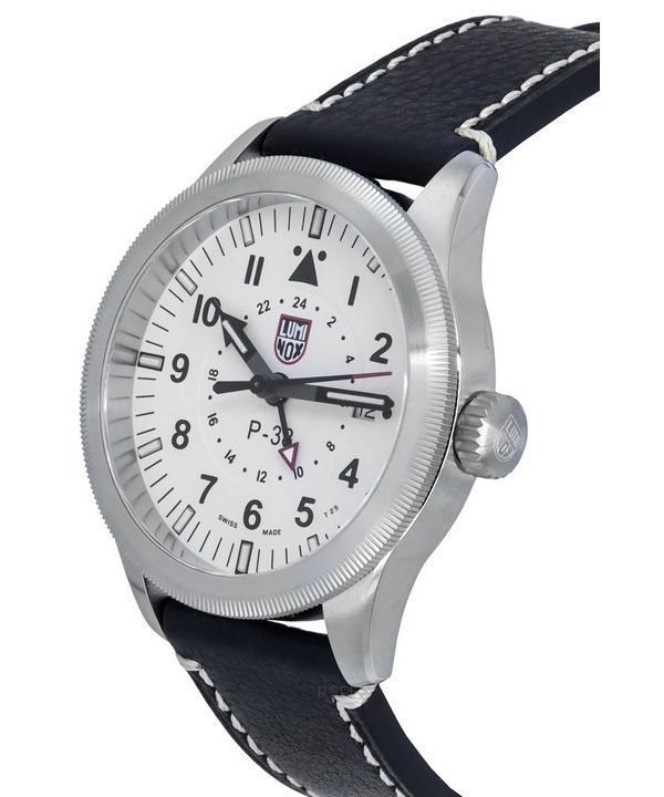 Luminox Air Pilot P-38 Lightning GMT Black Leather Strap White Dial Swiss Quartz XA.9527 100M Men’s Watch