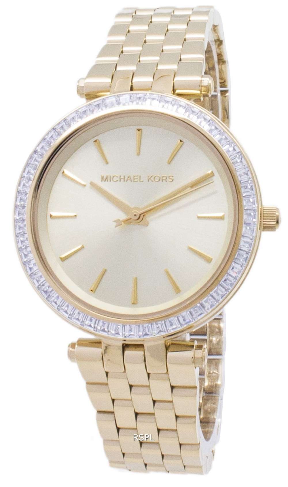Michael Kors Mini Darci Crystals Gold Tone MK3365 Women’s WatchSignify your romantic, committing side through this anniversary watch – the Darci crystal. It matches the wedding rings and symbolises a new beginning. An apt piece for showcasing everyday style with a show-stopping edge, its classic yet chic styling makes it an epitome of all-American fashion. Sophistication and luxury in quality materials and aesthetics that fit snugly a fast life, the Mini Darci helps you flaunt subtly and effortlessly a sense of modernistic style.
