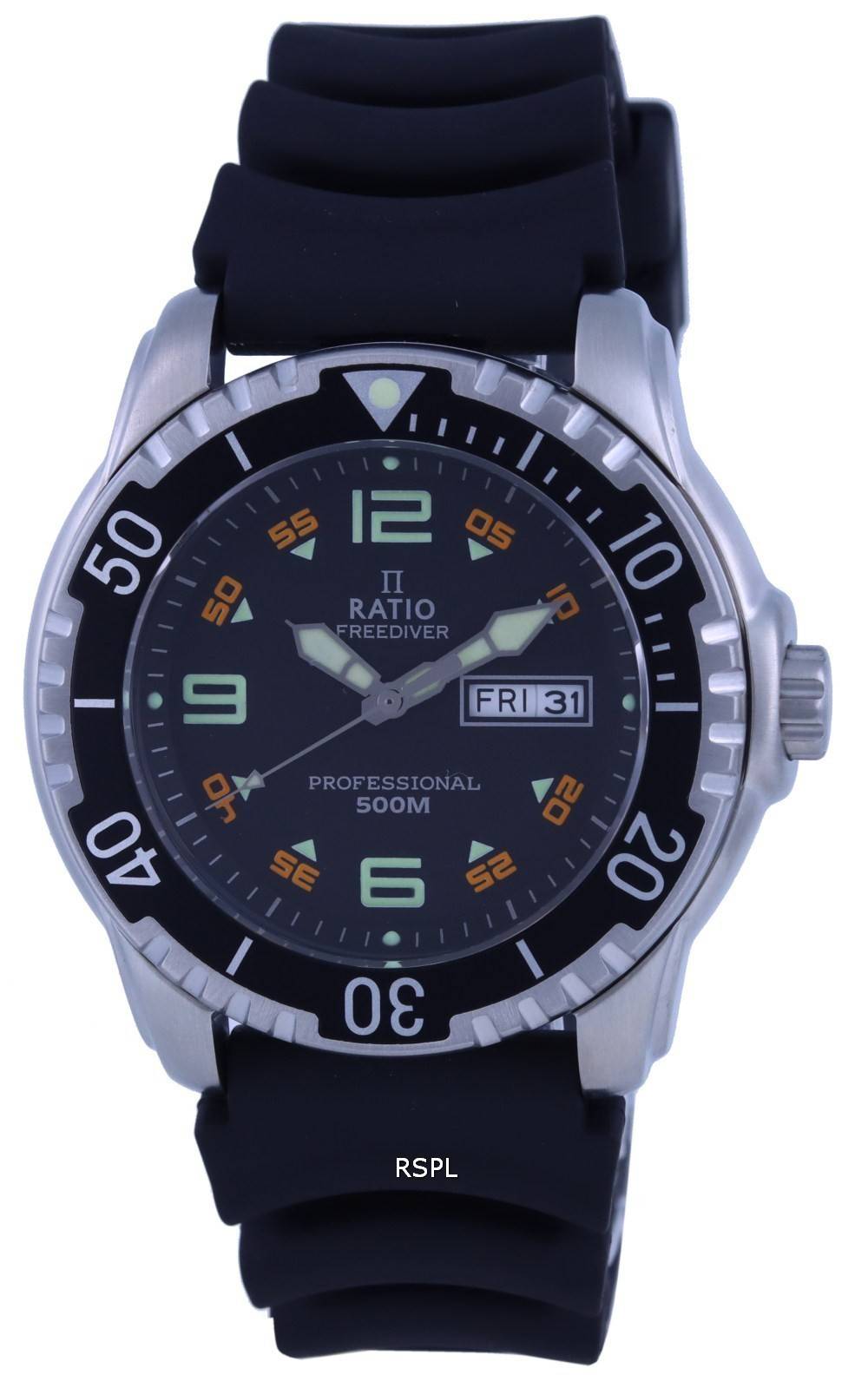 Ratio FreeDiver Black Dial PU Strap Quartz 48HA90-19-BLK 500m Men’s Watch