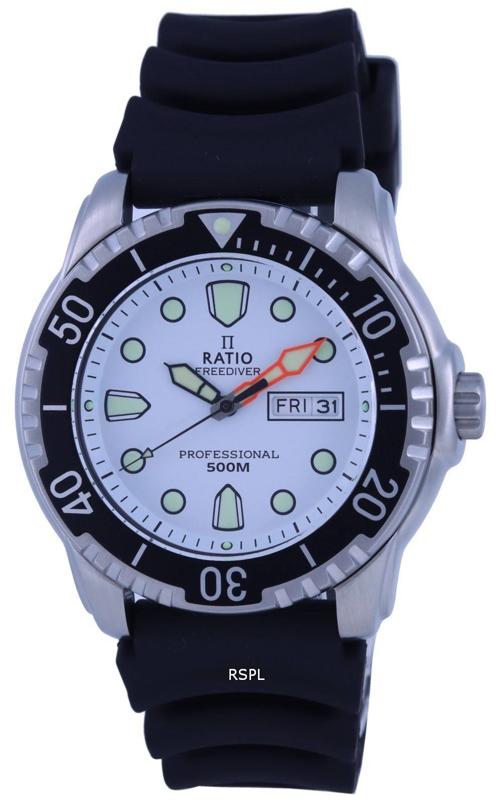 Ratio FreeDiver White Dial PU Strap Quartz 48HA90-02-WHT 500m Men’s Watch