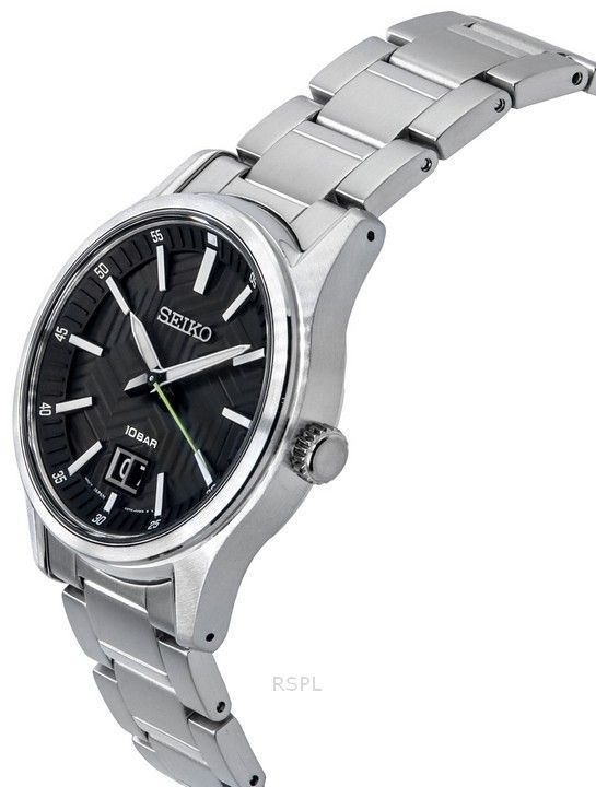 Seiko Analog Stainless Steel Black Dial Quartz SUR535 SUR535P1 SUR535P 100M Men’s Watch